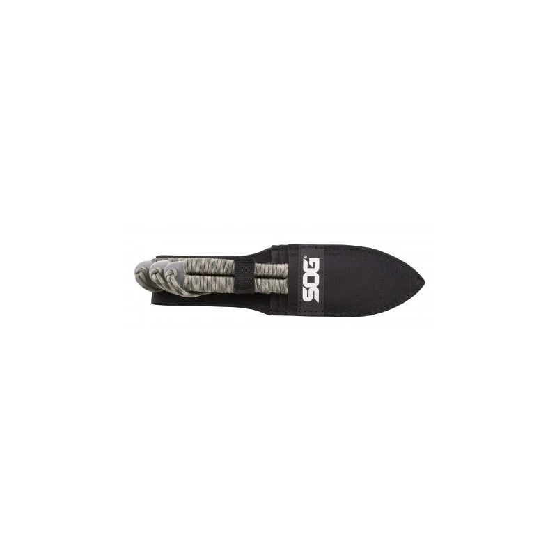 Voici 3 Couteau de lancer militaire SOG Fling qui possèdent un manche en Inox de couleur Gris recouvert de paracorde.