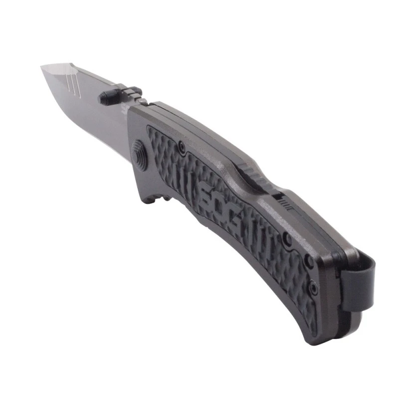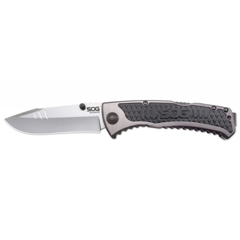 Voici le Couteau SOG Sideswipe qui possède un manche en Aluminium de couleur Noir et gris.
