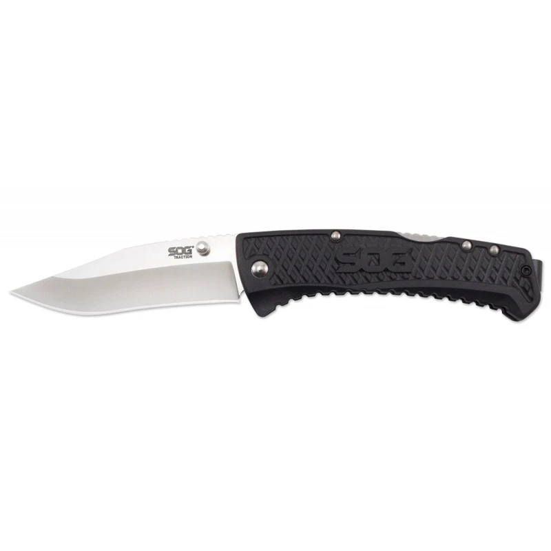 Voici le Couteau SOG Traction qui possède un manche en FRN (Nylon renforcé) de couleur Noir.