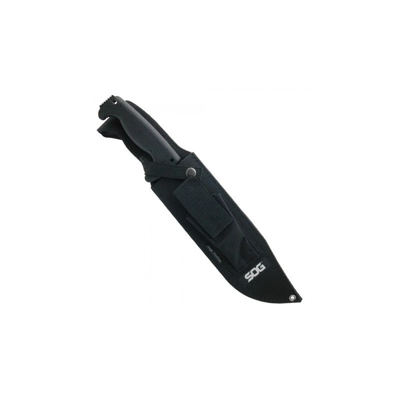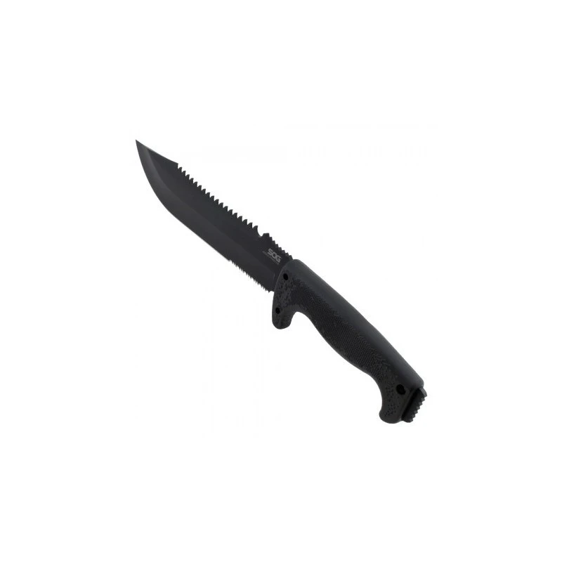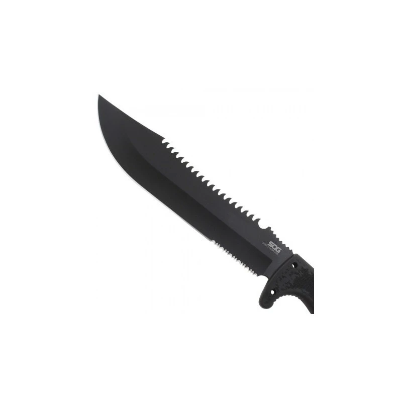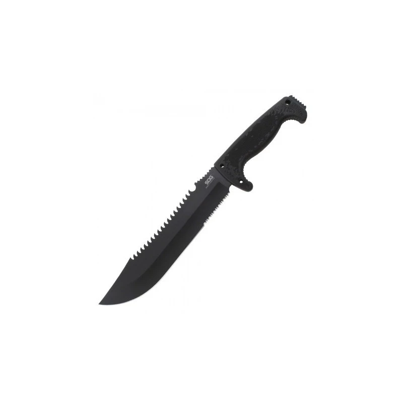 Voici la Machette tactique SOG Jungle Primitive qui possède un manche en Polymère de couleur Noir.