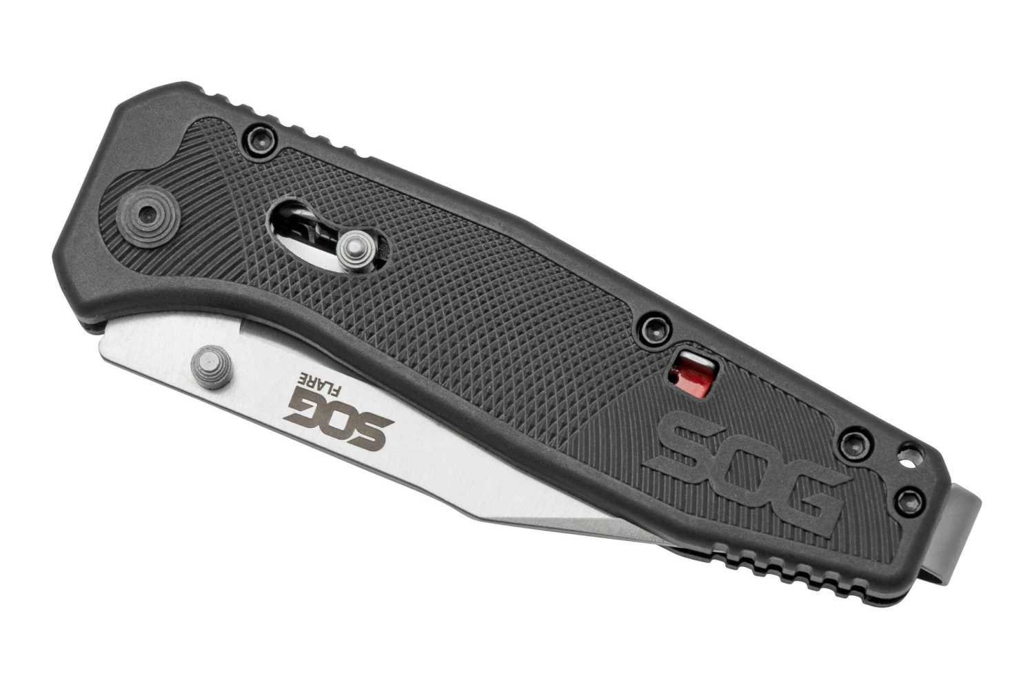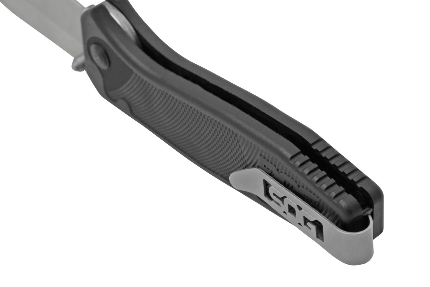 Le SOG Fielder est un couteau de poche EDC abordable. On ouvre la lame clippoint très facilement avec le repose-pouce. Le système d’ouverture assistĂ©e de SOG soutient l’ouverture de la lame Ă l’aide d’un ressort. Elle s’ouvre donc de manière très souple. Un slide-lock solide maintient la lame en position ouverte. Pour refermer la lame, il suffit de faire glisser le bouton slide vers l’arrière et de replier la lame. En repliant la lame, le ressort de l’ouverture assistĂ©e se remet automatiquement en place.