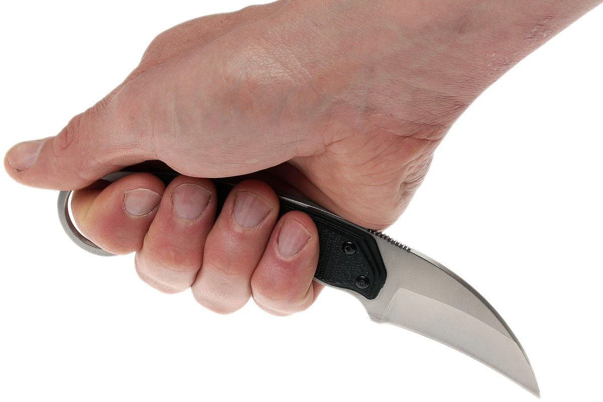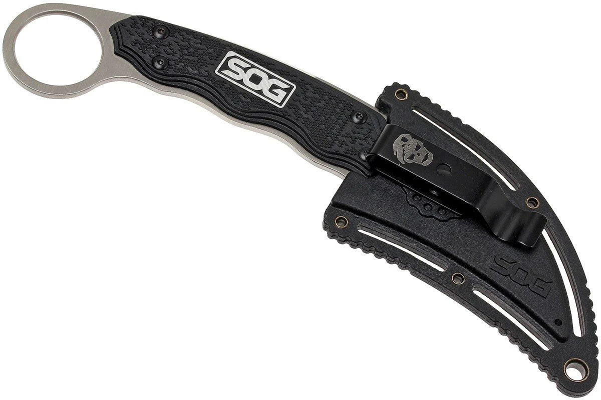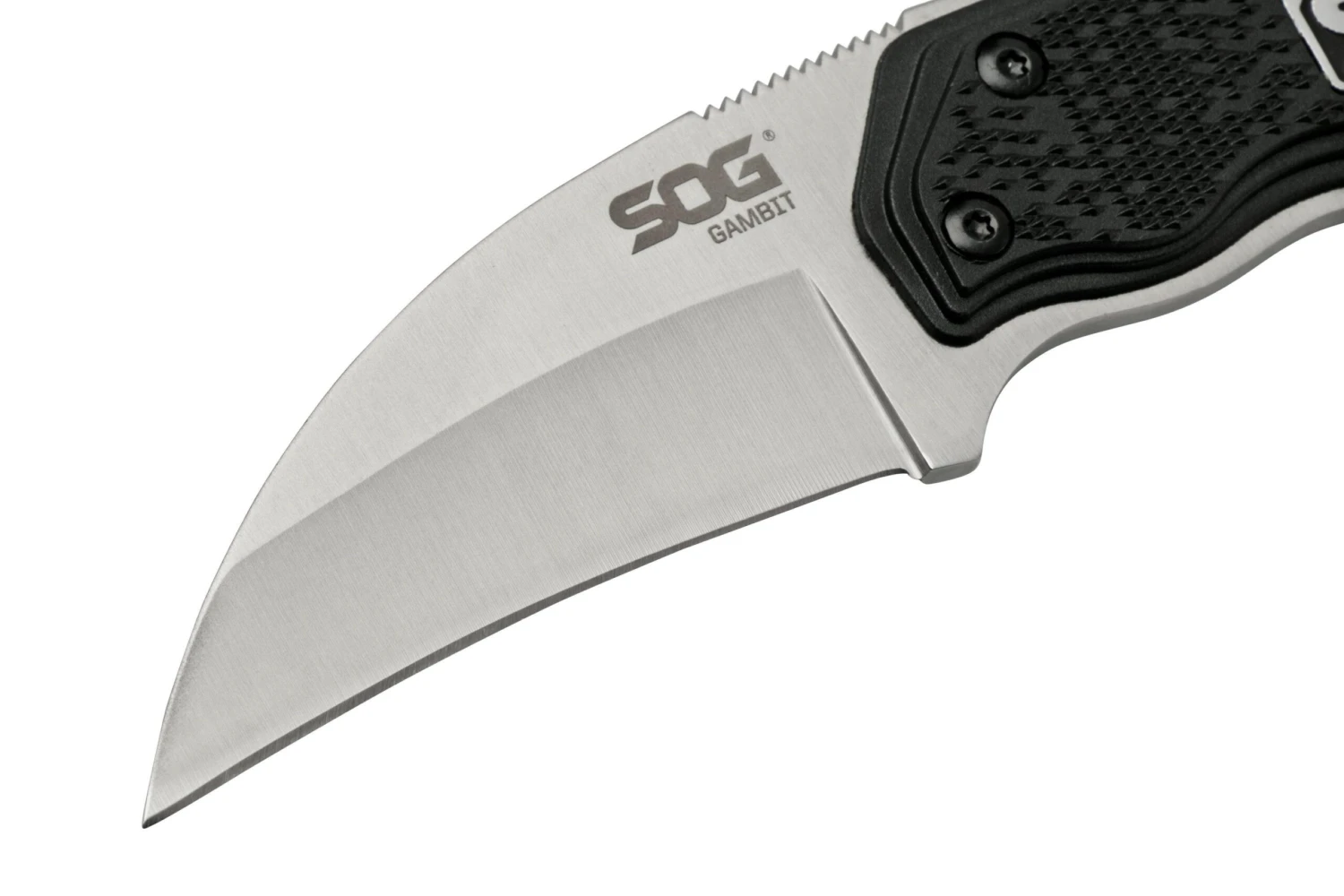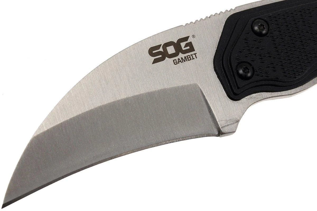 Le karambit SOG Gambit GB1001-CP est un couteau original et cool. Il est très apprĂ©ciĂ© des fans d’arts martiaux et parfait pour l’auto-dĂ©fense. Le manche en nylon renforcĂ© de fibre de verre associĂ© au trou pour le petit doigt offre une prise en main optimale. Ce couteau a une construction en pleine soie et un manche en G10. Il offre donc une très bonne prise en main et un excellent Ă©quilibre. La lame sheepfoot est en acier 7Cr17MoV rĂ©sistant Ă la corrosion et est tranchante comme un rasoir. Il s’agit d’un type d’acier très facile Ă aiguiser. L’Ă©tui en nylon inclus est dotĂ© d’un clip de poche qui peut se rĂ©gler Ă 360°. De quoi toujours sortir le Gambit de son Ă©tui de la façon que vous prĂ©fĂ©rez !