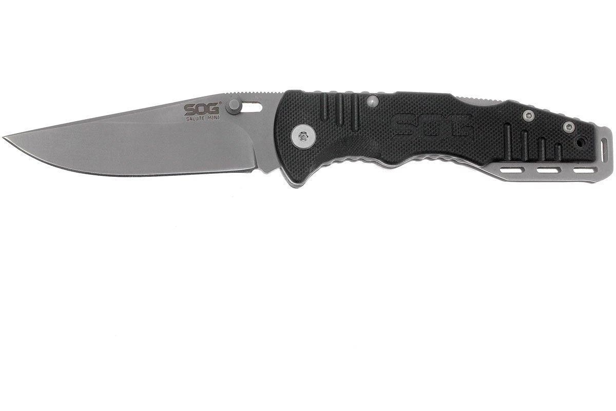 Le SOG Salute Satin FF1001-CP est un couteau de poche bien pratique, parfait en EDC. Un compagnon idéal à avoir toujours avec vous. La lame est en acier 8Cr13MoV. Le manche est en G10, ce qui vous permet de garder une bonne prise en main même avec des mains mouillées. L’ouverture du couteau est très facile d’une seule main. Caractéristique distinctive : on a la possibilité de positionner l’ergot de pouce soi-même. Vous pouvez le régler de manière à ce qu’il soit parfaitement accessible pour vous. Ajusté à la taille de votre main. Lorsqu’elle est ouverte, la lame est bloquée par un solide backlock. Le clip de poche est tip-up et peut être positionné pour les gauchers et les droitiers.