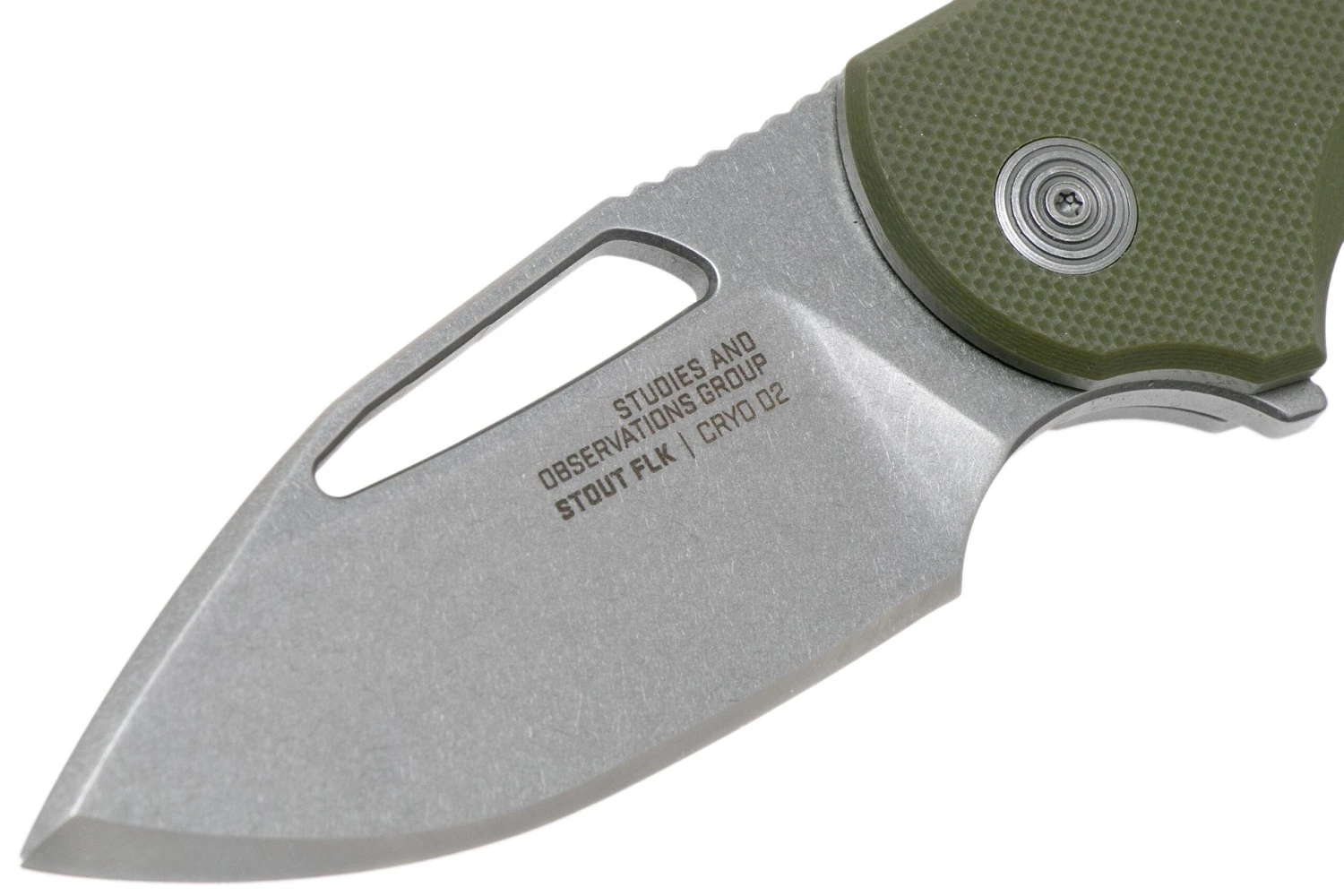 Le SOG Stout FLK Stonewash Olive Drab est un couteau de poche très compact. Fermé, sa longueur fait à peine 10 cm. Ce couteau de poche est idéal pour un usage quotidien. Il ne semble pas encombrant dans la poche de pantalon et s’ouvre très vite grâce au flipper.