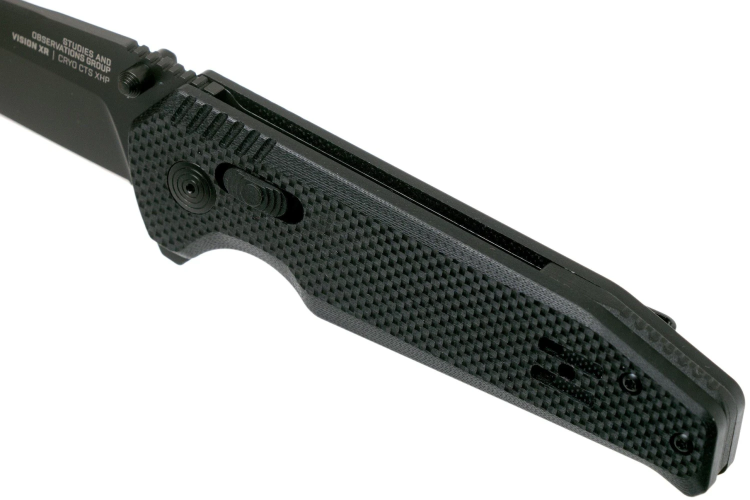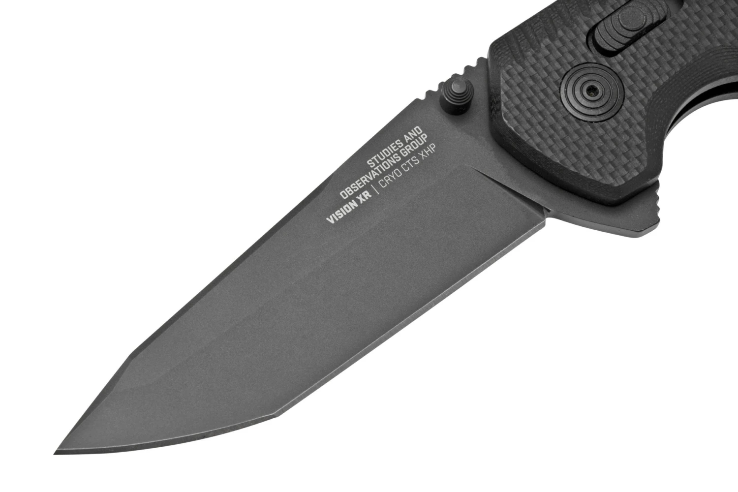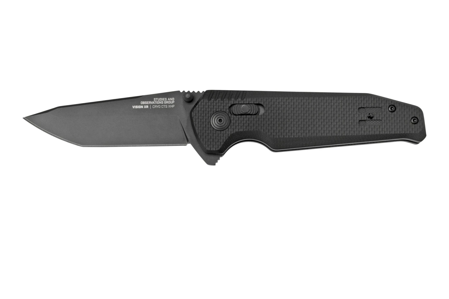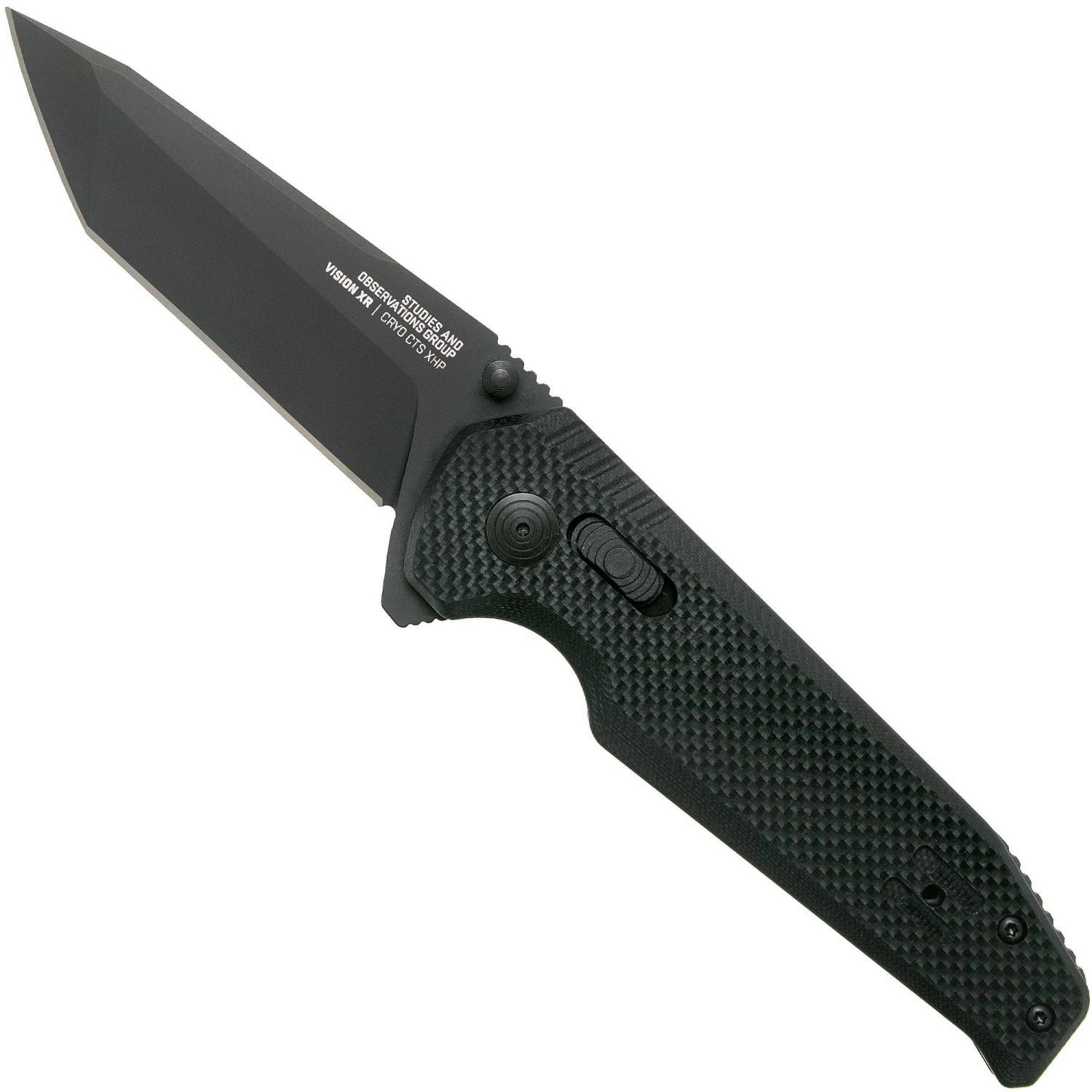 Le SOG Vision XR Black est un très bon couteau de poche EDC avec une lame tanto très stylée. Parfait pour ouvrir des emballages, éplucher une pomme ou comme couteau à portée de main à la ferme ou lors de petits travaux. Vous pouvez facilement l’ouvrir d’une seule main avec le flipper ou le repose-pouce pour pouvoir vous atteler à la tâche tout de suite.